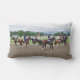 Le champ de courses célèbre de Saratoga tourne 150 cet été. Ce double coussin dégrossi comporte le pavillion avec du charme avec lui est des couleurs rouges et blanches. Le revers comporte les pur sangs disposant à s'inscrire au cours de gazon sur la voie de formation de l'Oklahoma, autrefois connue sous le nom de "asile de cheval". Renoncez