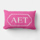 Perfectionnez pour une chambre à coucher ou la pièce de dortoir, ce coussin lumineux et gai comporte un cadre blanc autour de votre choix des lettres grecques sur un arrière - plan rose et blanc de point de polka.
