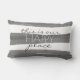 Cette citation coussin a texte ceci est notre heureux endroit peint gris et blanc rayures aquarelle pour la décoration maison.