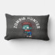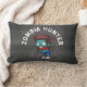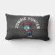 Un oreiller macabre avec un zombie à l'air cool, vêtu de vêtements déchirés et en lambeaux, les bras tendus à la recherche de brrraaaaiiins. Grands yeux vides avec une peau verdâtre malade. Des éclaboussures de sang derrière sa tête. Le texte dit chasseur de zombies, en lettrage incurvé.