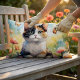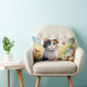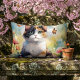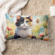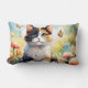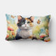 Coussin Rectangle Chat calico dans un jardin printanier avec des pap