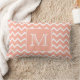 Coussin Rectangle Chevron rose et blanc de corail avec le monogramme