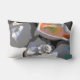 Les oeuvres d'art doucement colorées de ce Coussin Lumbar ont été réalisées à partir d'une photo originale de closeup de coquillages de mer. Les coquillages sont des coquillages de conques, blancs à l'extérieur avec des intérieurs rose saumon. Les coquilles sont dans un tas, chaque coquille de mer faisant face à une direction différente, faisant des formes courbes et fluides dans le design. Les coquilles sont dans la lumière du soleil et l'ombre, avec des reflets blancs et bleus lavande, et des nuances de gris plus profond dans l'ombre.
