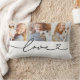 Trois de vos photos préférées s'élèvent au-dessus d'un script d'amour noir fluide avec un flourish de cœur sur un fond blanc propre. Cet oreiller lombaire personnalisé est parfait pour mettre en valeur les souvenirs de famille, les portraits de couple, les enfants et les animaux de compagnie, ou toute combinaison de moments chéris. Téléchargez vos propres photos pour créer un souvenir ou un cadeau significatif.
