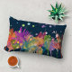 Coussin Rectangle Colorful Watercolor Flowers on Dark Blue