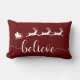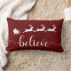Crois à la magie de la saison. Cet oreiller rouge foncé réversible présente une silhouette blanche simple de Père Noël et son renne tirant le traîneau au-dessus du mot "Croire" dans une police décorative. Disponible dans d'autres options de couleurs. Merci pour votre intérêt pour SapphireDesigns!