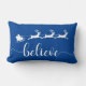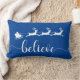 Crois à la magie de la saison. Cet oreiller à jetons réversible bleu profond présente une silhouette blanche simple de Père Noël et son renne tirant le traîneau au-dessus du mot "Croire" dans une police décorative. Disponible dans d'autres options de couleur. Merci pour votre intérêt pour SapphireDesigns!