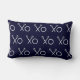 Un coussin de crosse unique avec un motif de design xoxo en bâton lax sur le terrain bleu marine.