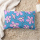 Coussin Rectangle Design de fleurs bleues et roses main tiré