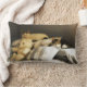 Ce beau coussin présente une photographie de deux chats se reposant sur les coussins d'un lit avec un ours en peluche blanc en peluche, un endroit très accueillant pour n'importe quel amoureux des chats pour poser la tête.
