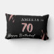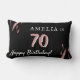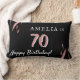 Elégante Aquarelle rose Noir 70e anniversaire Lumbar Coussin. Un cadeau d'anniversaire élégant avec des rayures d'aquarelle rose sur un arrière - plan noir. Personnalisez-le avec votre nom, votre date et votre âge.
