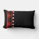 Cabine rustique dans le design boisé. Coussin noir avec une bande d'un plaid rouge, noir et crème avec des empreintes de pattes d'ours crème sur un côté. Pleine plaine à l'arrière. Le rouge est changeable ! Échangez le rouge pour n'importe quelle couleur.