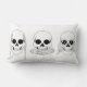 Coussin crâne double face. Une des parties n'a pas entendu de mal, ne parle pas de mal, ne voit pas de crâne maléfique. Le dos a un motif crânien simple