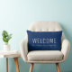 Nom monogramme de la famille de bienvenue bleu marine moderne, coussin.