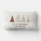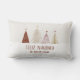 Un design festif élégant présente un élégant étalage d'arbres de Noël enneigés en rouge, or & rose sur un arrière - plan beige légèrement rayé crème neutre enneigé. La partie inférieure est recouverte de neige blanche avec "Feliz Navidad" en typographie classique élégante. Ajoutez un nom personnalisé ou une ligne de texte personnalisé dans le script rouge correspondant avec le modèle simple à utiliser. Le dessin se répète à l'arrière.
