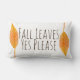 Jolies feuilles d'automne orange jetez l'oreiller avec la phrase "feuilles d'automne oui s'il vous plaît" dans un texte brun simple.