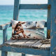 Coussin Rectangle Fille de la Plage Côtière & Phare