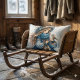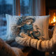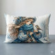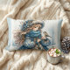 Coussin Rectangle Fille d'hiver avec oiseau en manteau floral bleu