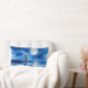 Lumbar Coussin dans l'illustration d'une jeune femme solitaire en robe bleue debout au bord d'une plage, regardant la pleine lune réfléchissant sur l'océan. Le ciel nocturne serein est parsemé d'étoiles.