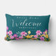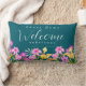 Coussin Rectangle Floral Garden Teal Welcome Throw Pillow