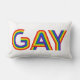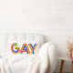 Cette oeuvre d'art présente le mot Gay dans une police couleur arc-en-ciel.