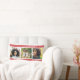 Le coussin lombaire moderne de Noël dispose de 3 de vos photos préférées avec des images de flocs de neige entre les photos. Bandes rouges en haut et en bas avec texte personnalisé. Fait un merveilleux cadeau de Noël.