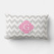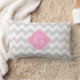 Coussin Rectangle Gris Clair Blanc Chevron Rose Quatrefeuille Monogr