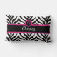 © Designs socialites. Ajoutez des éléments de design sobres et chic à votre salon avec ce motif zèbre, dentelle rose chaud, monogramme et coussin lombaire nom.