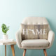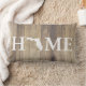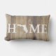 Coussin lombaire rustique élégant avec un arrière - plan en planches de bois clair avec le mot "HOME" et le "O" étant une silhouette de l'état de Floride. Le côté arrière a votre nom de famille en texte blanc.