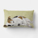 Ce bel oreiller à jetons lumbar présente mon portrait d'un Jack Russell qui dort paisiblement, dressé contre un motif abstrait de frondes de fougères.