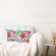 Oreillers fleurs et feuillage aquarelle verte, rose, bleue et rouge.