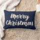 Coussin Rectangle Joyeux Noël moderne rustique Script bleu marine