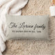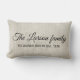 C'est un grand coussin qui indique la famille établie et puis une date. Il a le lettrage noir sur un tissu de toile beige de regard. Vous pouvez facilement changer le nom et employer ce qui jamais la police, la couleur et la taille que vous préférez.