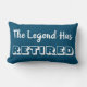 Un cadeau de retraite intelligent et utile avec un devis de retraite populaire et amusant. Ce coussin lombaire a une palette de couleurs nautiques bleu et blanc de l'océan. Il a un design typographique simple avec l'humour de retraite "La Légende a pris sa retraite". L'adage est écrit en gras typographie blanche sur un arrière - plan bleu océan. Un souvenir de fête de retraite amusante ou un cadeau de conservation pour un collègue, un ami ou un mari qui prend sa retraite, etc.