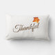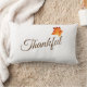 Cet oreiller de lancer est montré en couleur blanche avec une impression de texte Thanksgiving Thankful.