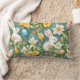 Coussin Rectangle lapins, fleurs de printemps et oeufs de Pâques. Pe