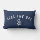 Ahoy ! Mettez la voile avec notre plage mignonne inspiré jetez l'oreiller dans la marine nautique classique bleu et blanc. Le design présente "Mer le jour" en lettres blanches modernes courbées sur une corde nautique et illustration d'ancre.
