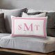 COUSSIN RECTANGLE LETTRE ROSE ET BLANCHE TROIS LETTRE MONOGRAPHIQUE
