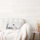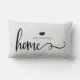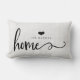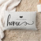 Ce coussin élégant et rustique de style de ferme indique "à la maison" dans la typographie à la mode de manuscrit, et a une tache pour votre nom avec un coeur.