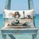 Coussin Rectangle Mermaid Lighthouse Coastal Watercolor Scene