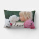 Modern LOVE Script Photo Heart 1 ou 2 Photos Lumbar Coussin. Créez votre propre coussin photo avec une ou deux photos ou images à fond sur le devant et le dos avec un script de calligraphie moderne et sophistiqué titre LOVE overlay accentué de coeurs dans votre choix de texte et de couleurs de coeur (montré en noir). ASSISTANCE : Pour obtenir de l'aide sur la modification de la conception ou le transfert de la conception à un autre produit, contactez le concepteur AVANT DE COMMANDER via l'onglet MESSAGE Conversation Zazzle ou envoyez un courriel à makeitaboutyoustore@gmail.com.