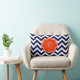 Un cadre orange personnalisable de monogramme est sur un arrière - plan d'un motif audacieux de chevron de bleu marine et de blanc.