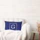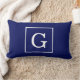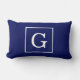 Coussin Rectangle Monogramme Initial Cadre Bleu Marine Blanc