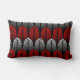Lumbar coussin dans un motif de papier peint Art Déco vintage basé sur une plume stylisée - tons gris argenté / gris et rouge chinois profond sur un arrière - plan noir