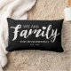 Coussin familial personnalisé avec un arrière - plan noir qui peut être changé à n'importe quelle couleur, le dicton "nous sommes la famille" avec un coeur mignon au-dessus du "i", l'année établie et votre nom de famille.