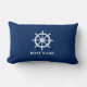 Votre nom de bateau personnalisé avec Nautical Classic Ships Chapeau de roue sur un coussin Coussin bleu Lumbar de la marine personnalisée.