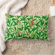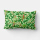 Lancer l'oreiller dans une tapisserie de William Morris Art Nouveau motif d'oiseaux exotiques dans un grenadier, avec des feuilles vert émeraude, des oiseaux et des fruits en vert citron et rouge rubis profond, et un arrière - plan vert citron pastel