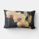 L'oeuvre originale de ZoeSPEAK sur ce Coussin Lumbar est une photo originale de fleurs d'orchidées, en particulier P. Chain Xen Queen, Yellow/Red Lip. La photo est un closeup, une vue détaillée des pétales de fleurs jaune clair entourant les lèvres rouges profondes au centre des fleurs. Il y a aussi une touche de lavande avant que les pétales ne deviennent jaunes. L'arrière - plan qui entoure les orchidées est composé de tons gris foncé à noir. Dans les coins inférieurs du design il y a des mots en écriture d'une couleur dorée claire. Le script dit "Orchidée Jaune" d'un côté du coussin, et "Orchidée jaune" (qui est "Orchidée Jaune" en français) de l'autre côté du coussin.