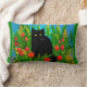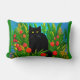 Coussin Rectangle Petit chat noir dans un jardin de tulipes