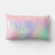 Un arrière - plan holographique tendance avec licorne et arc-en-ciel, couleurs holographiques en rose, violet, vert menthe. Décoré avec des gouttes de rose et de violet. Personnalisez et ajoutez un nom, écrit avec un script de style à la main moderne avec des swashes. Lettres violettes. Pour que les swashes ne suppriment que le nom de l'échantillon, laissez les espaces ou émoticônes devant et après le nom.